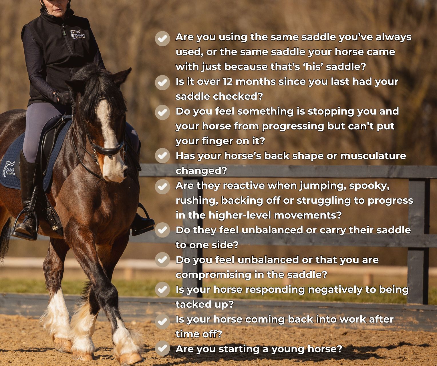 If you are looking to invest in a new saddle for your horse, why not start with a Test Ride with a SMART Advisor? Complete an enquiry form today: https://www.smartsaddles.com/contact