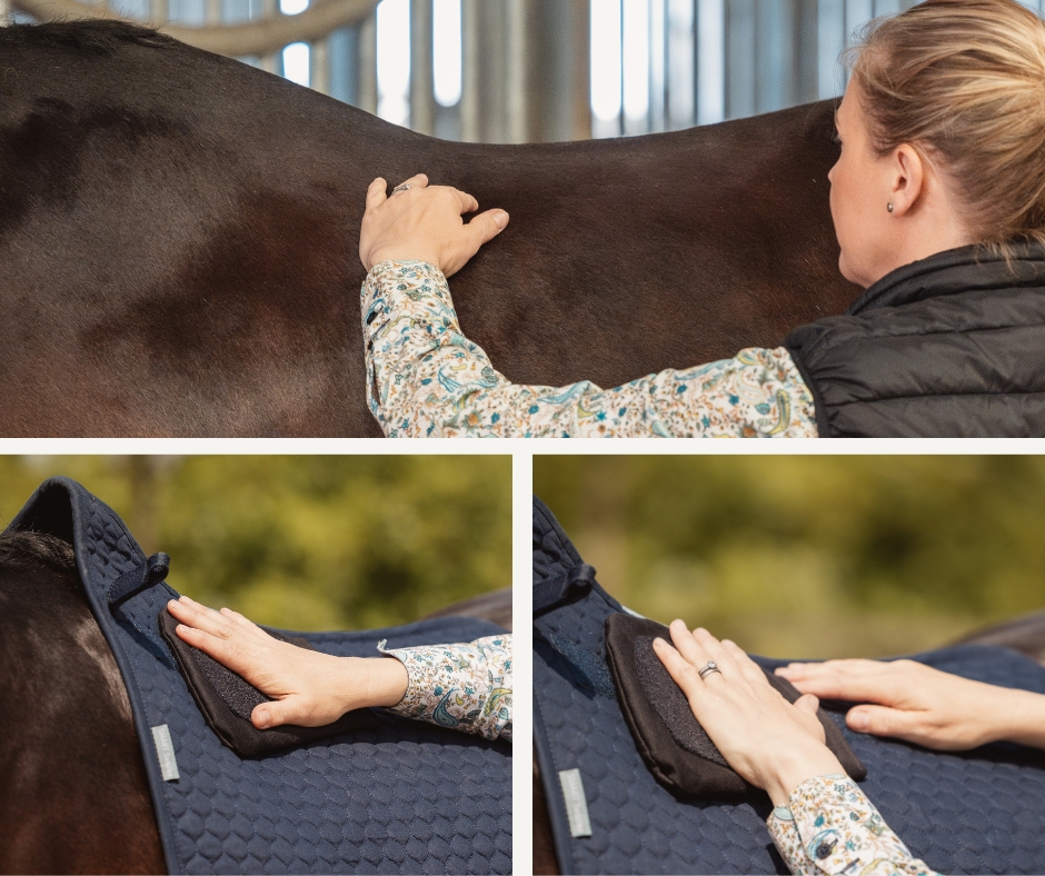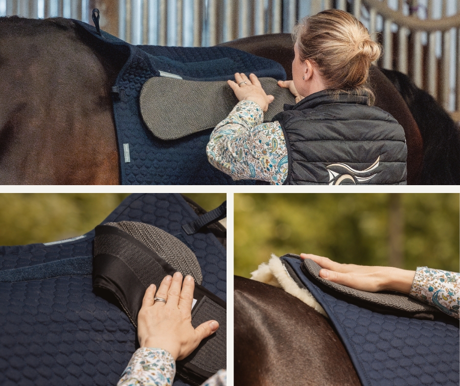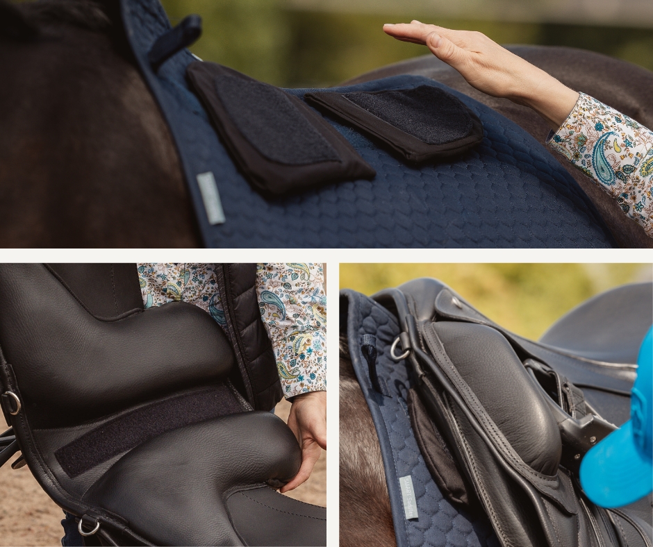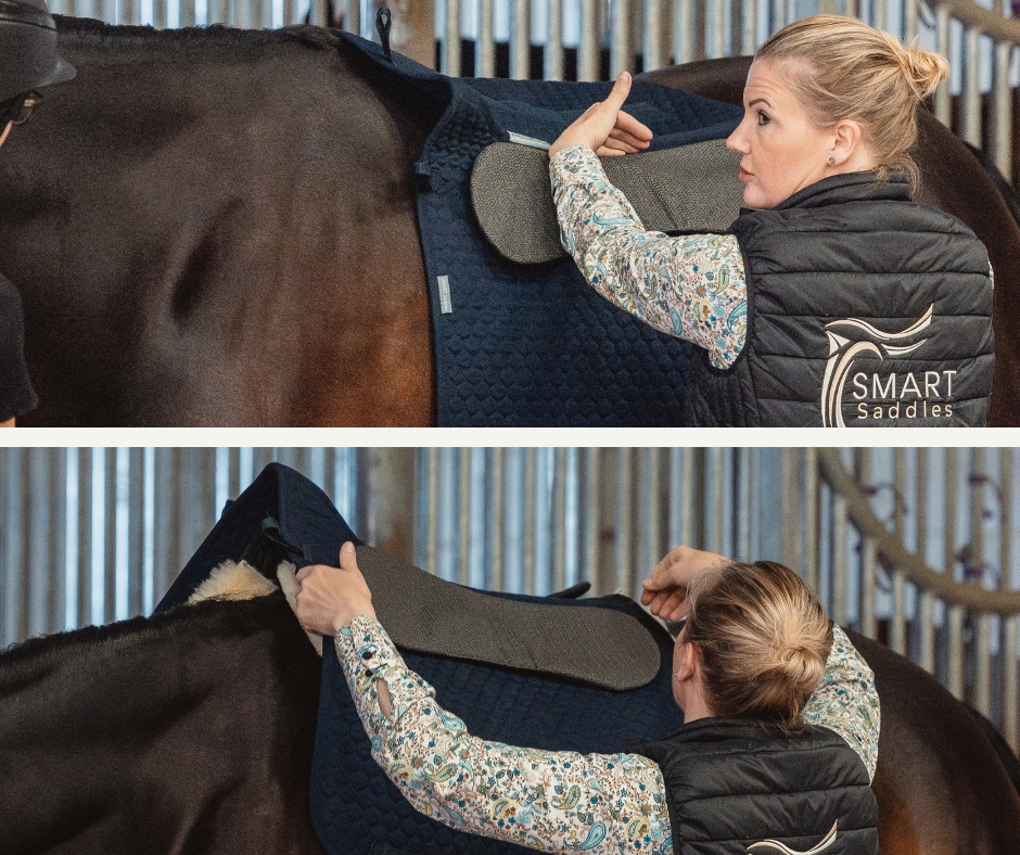 Correctly placed shims and dorsal pads are used to adjust the saddle fit for horse and/or rider depending on the horse's back shape and muscle condition.